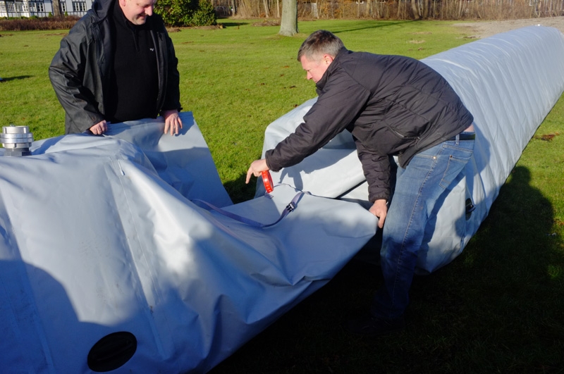Cold Flood Prevention ApS has strived to find a solution that replaces the traditional sandbag often used for flooding. The sandbag is not, as one might believe, a cheap and good solution. They are very heavy and costly to lay out, which is slow and troublesome. A filled sandbag is approx. 40 cm long and weighs over 20 kg.